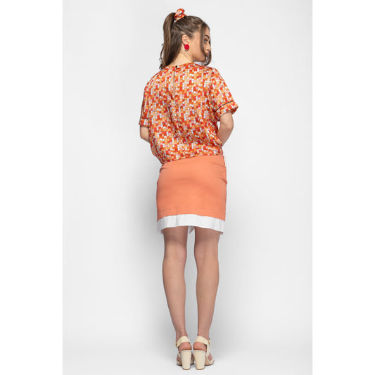 Sun Top - Wrap Cotton Top with Printed Details (Terracotta Tiles/White)
