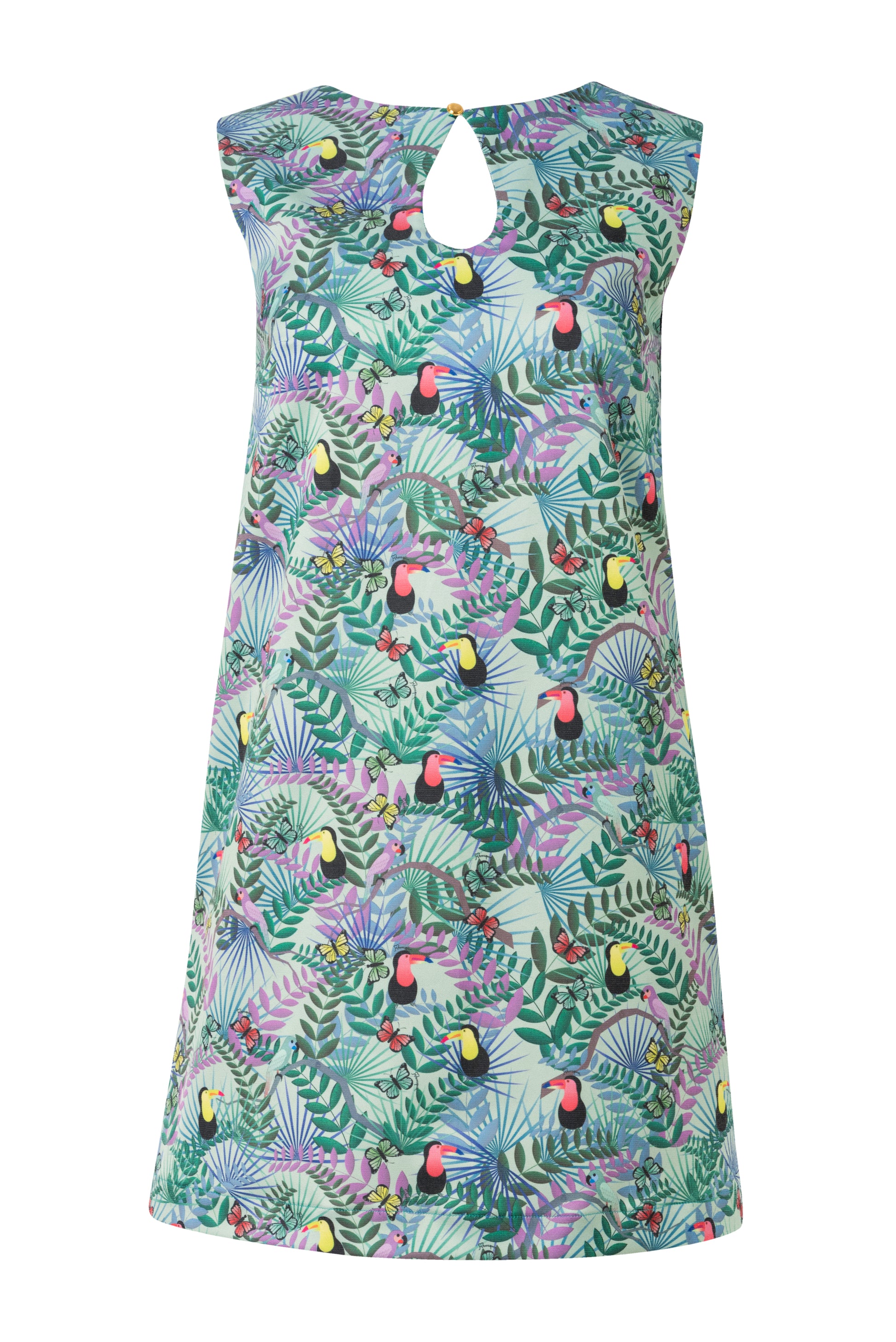 Fits true to size, take your normal size. Mini length. Motif exclusively designed for The MAnnequin Collection. No sleeves. Key-hole neckline. Open back. A-line fit. Button fastening in the front. Side pockets. Mid-weight material. Made in Greece.