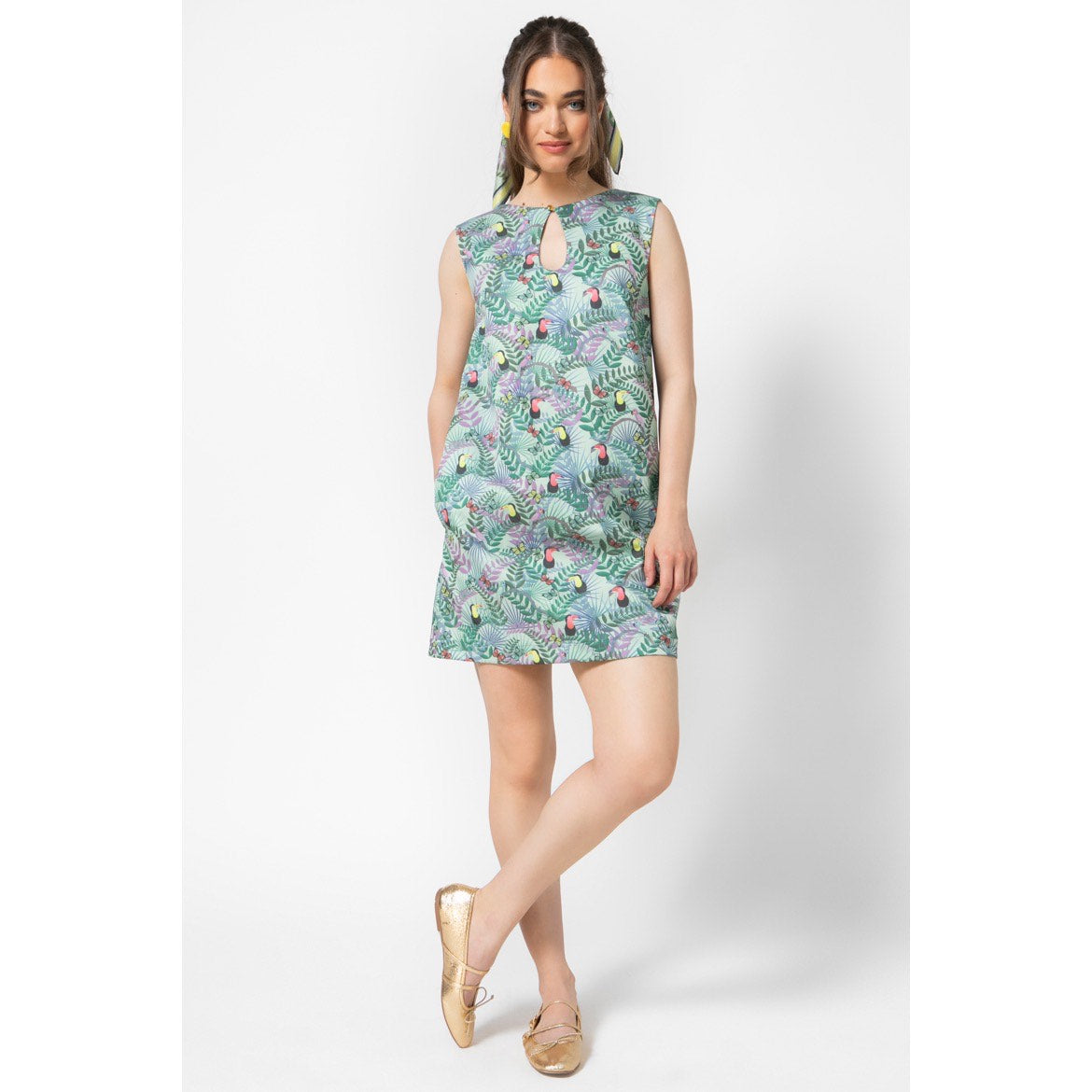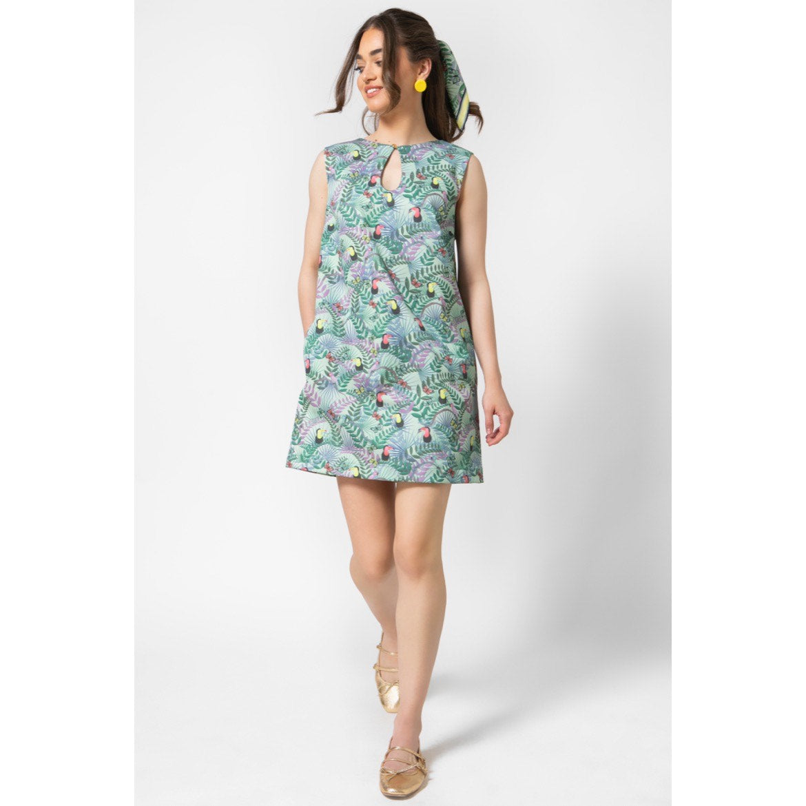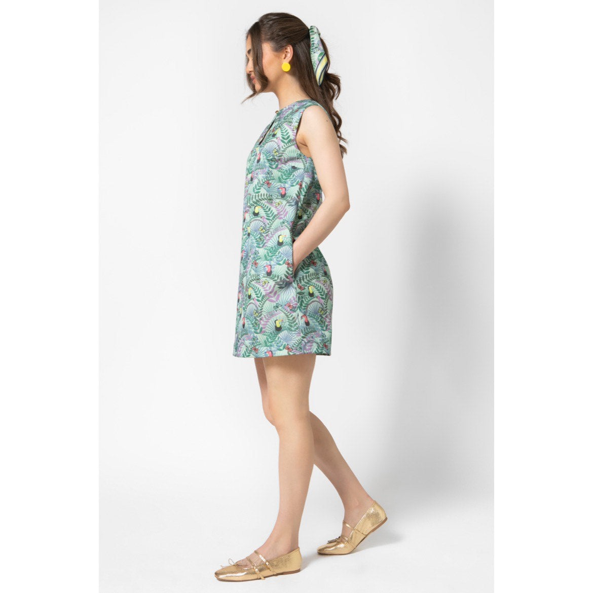 Mamma Mia, this mini cutie delivers the dazzle! Hitting just above the knee, our Aster Dress printed in our signature Fauna Mint print features the cutest keyhole neckline, being classy and sexy in the same time. Its A-line shape and soft cotton texture, make her the best companion for a day to night decadence.