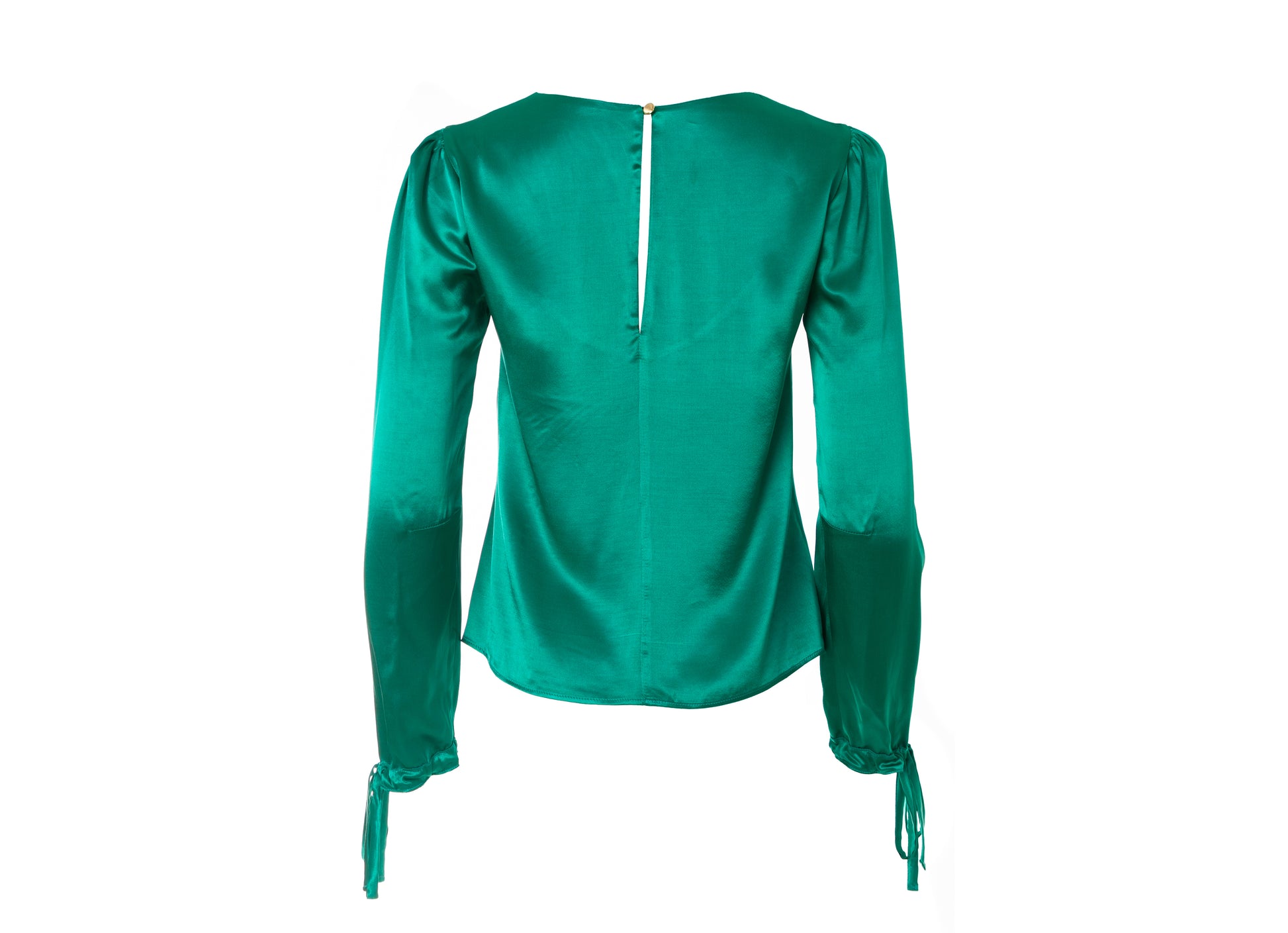 Aurelia Top won't disappoint you, ever! Cut in our shiny, satin viscose for a hint of everyday luxury, this top has long sleeves that ruche down in the cuffs, adding a flair of charm. It comes in the one of the boldest colours of the season, i.e. Emerald Green and you can match it with any bottom piece you like!! Dress it down with a pair of black pants or dress it up and matchy-match it with its coordinated Chloe Culottes.