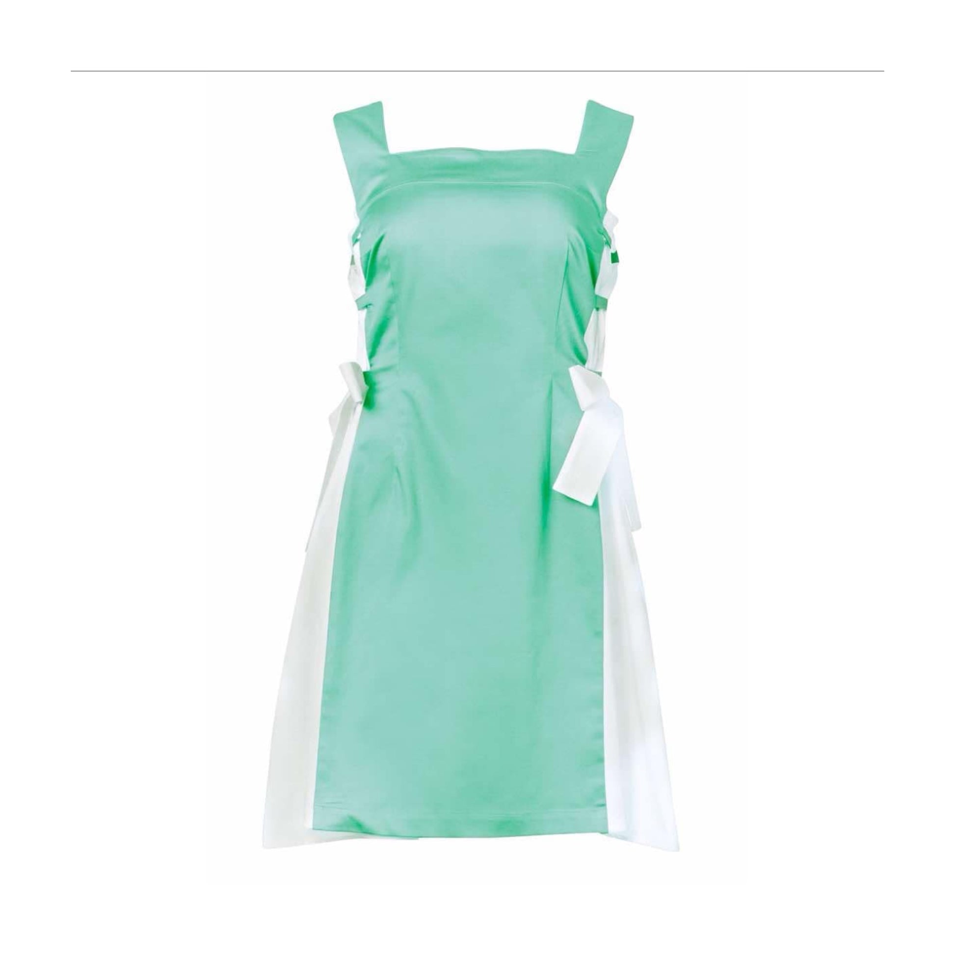 Bud Dress - Mini Cotton A-line Dress (Seafoam Green/White)
