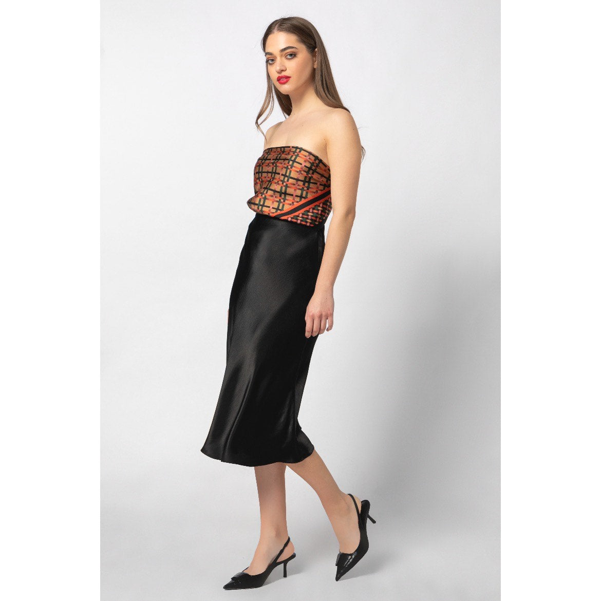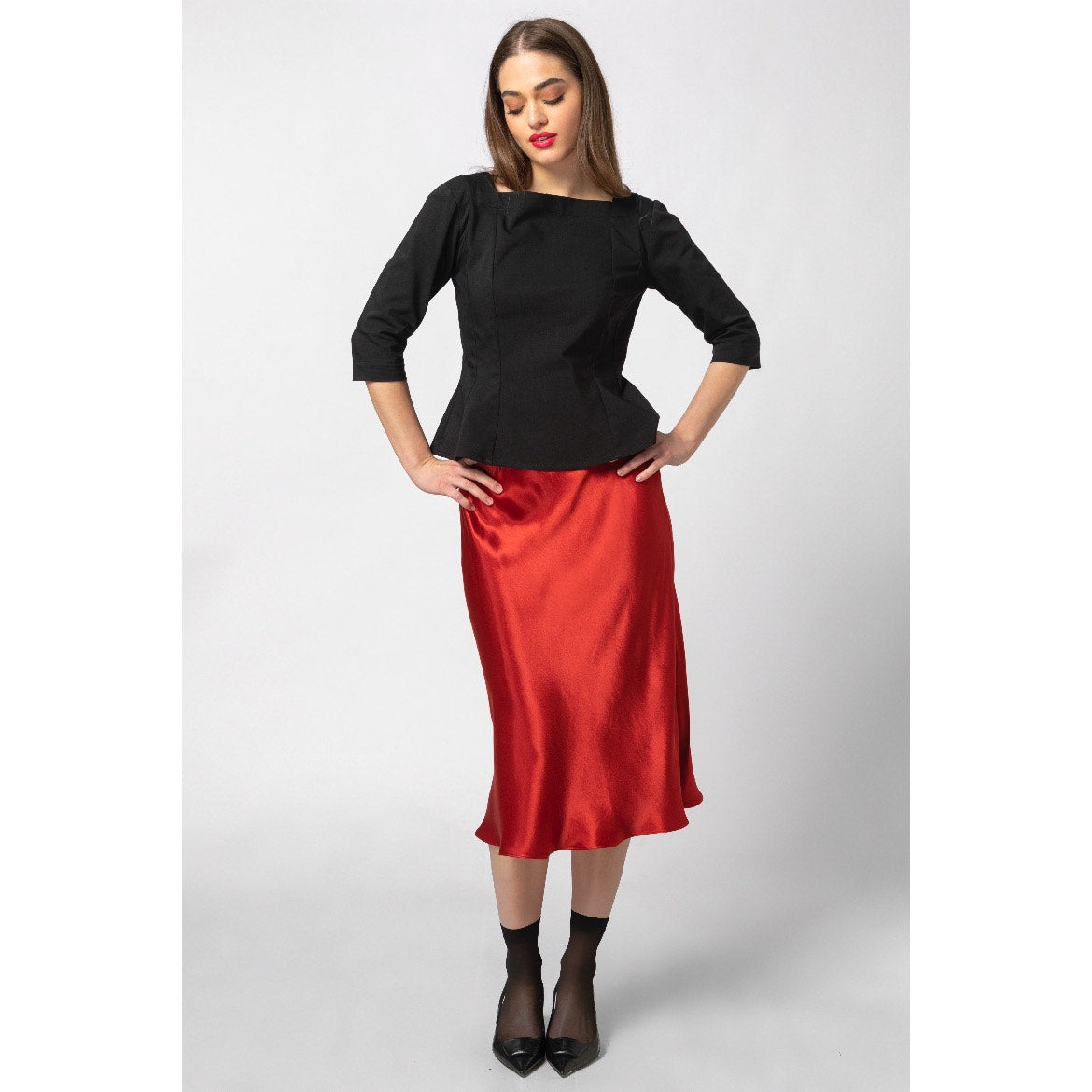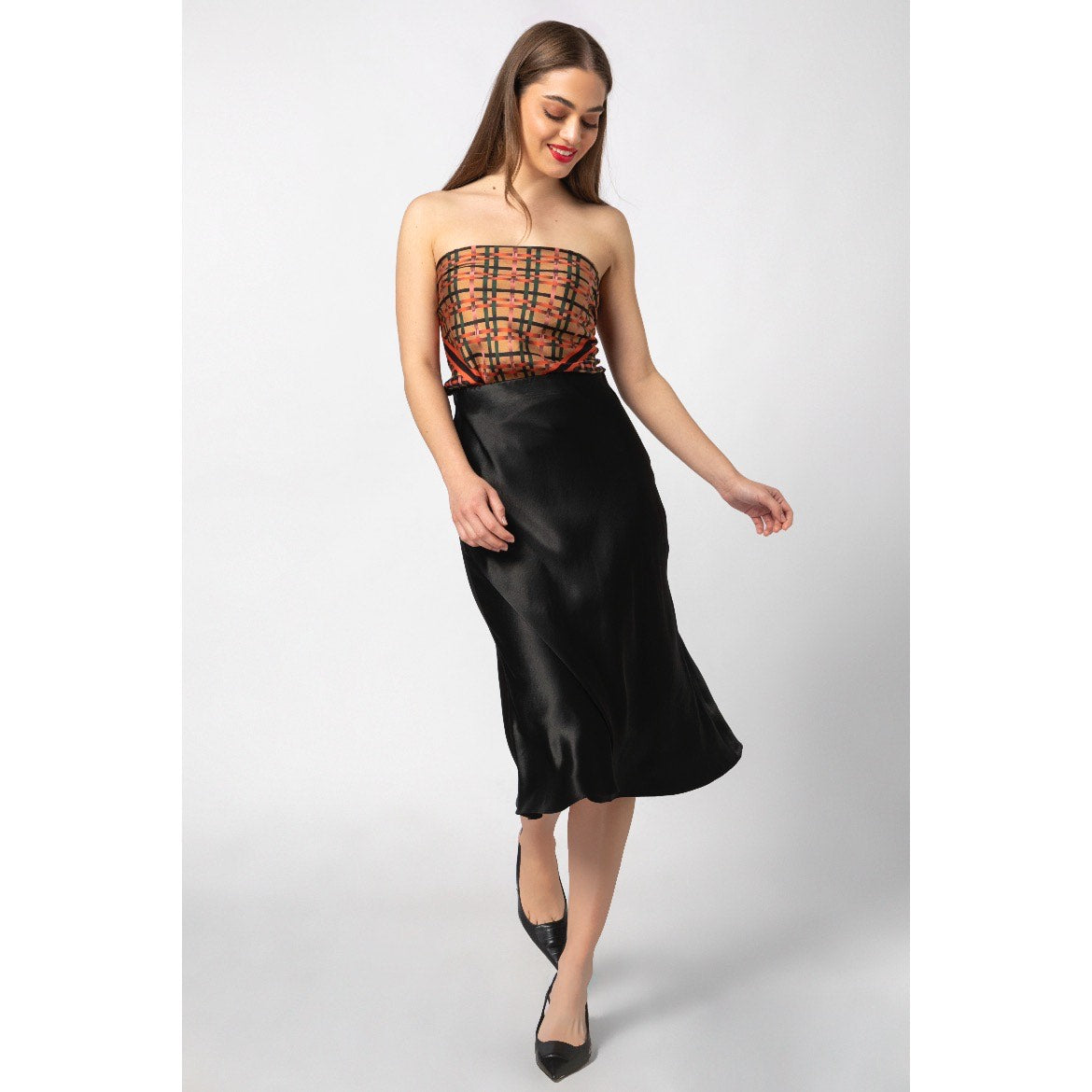 Fiona Skirt is your best bet for a fashionable fall. It's made from lustrous satin, cut on the bias for a beautiful drape, sits comfortably at your natural waist and hits just below the knee. Style her with a satin camisole top for your night outs or with your sneakers matched with your coolest t-shirt for your everyday city strolls.