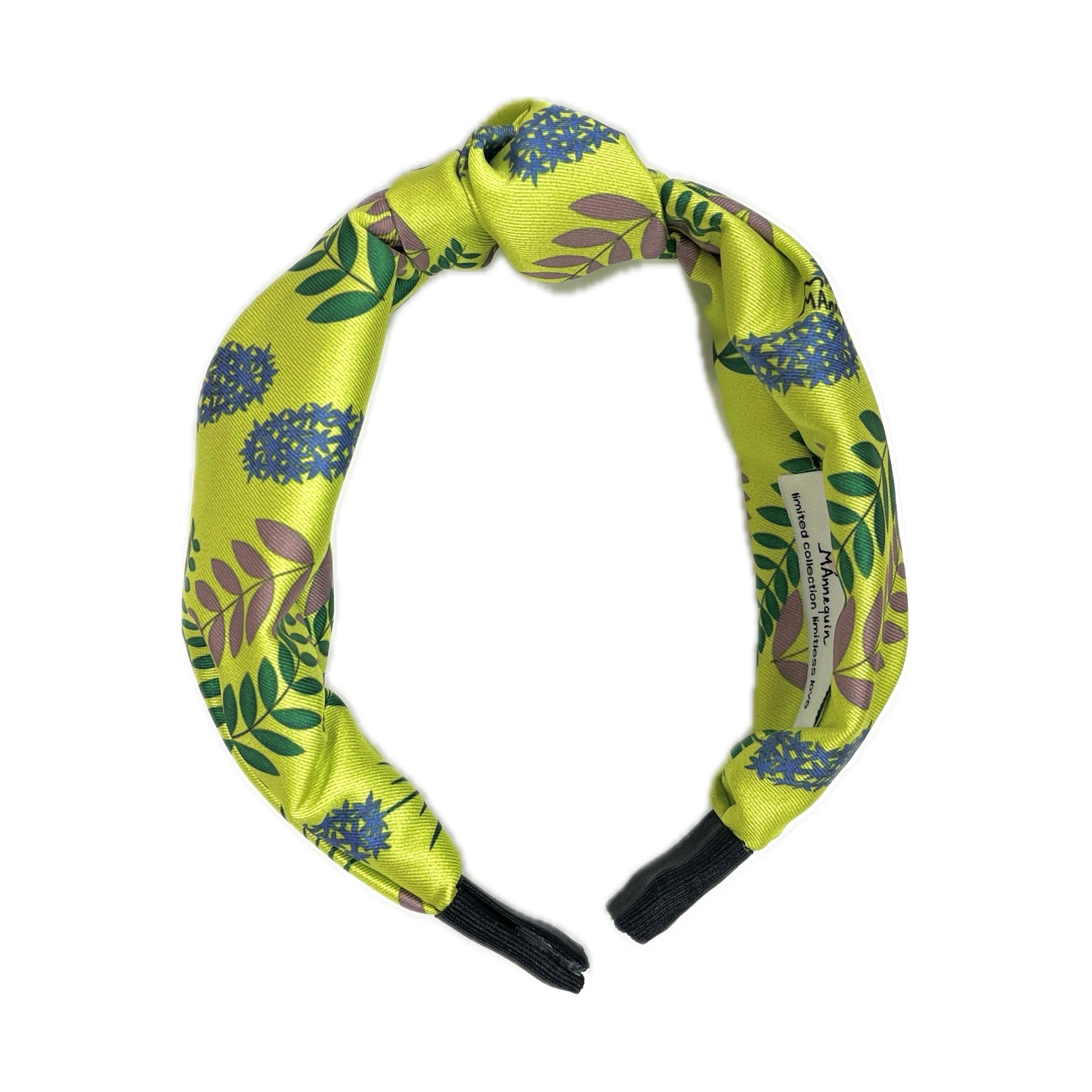 One size. Length: 37cm. Pattern exclusively designed for The MAnnequin Collection. Silky texture. Knot in the middle. Black plastic headband. Gross grain ribbon.