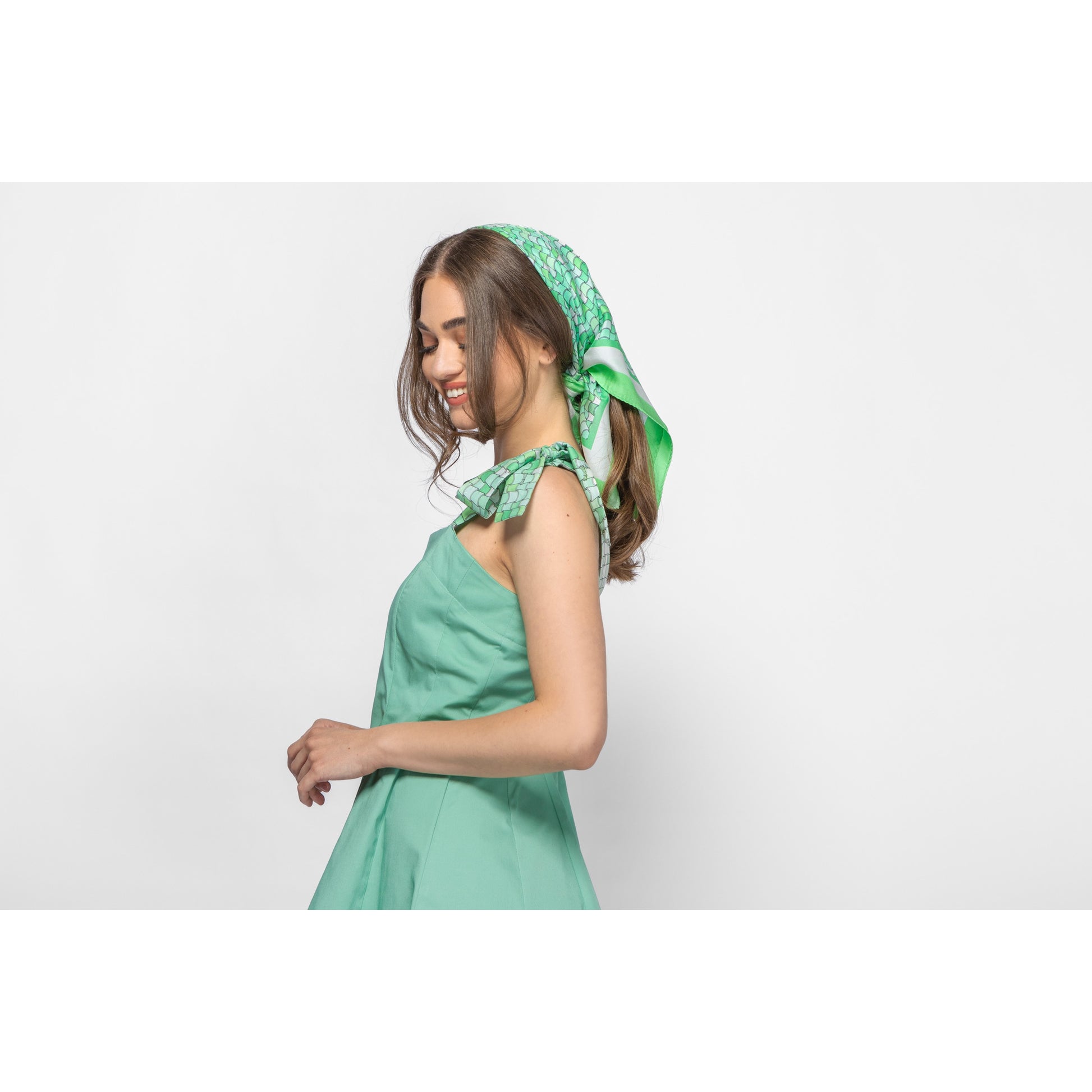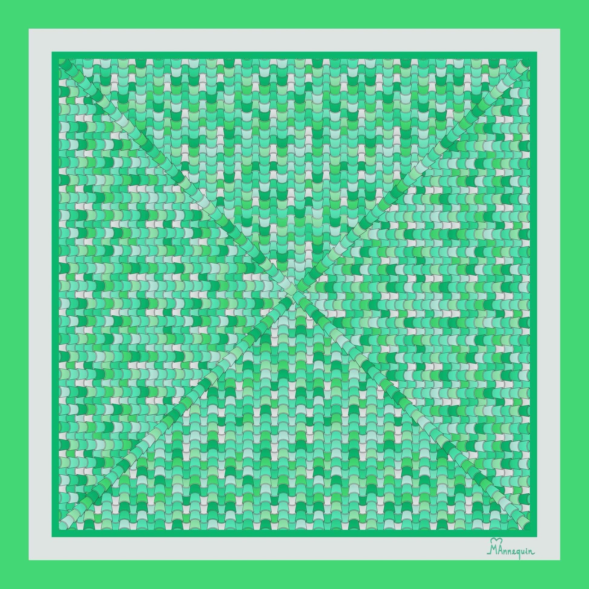 Green Tiles Printed Silk Scarf - 70x70cm