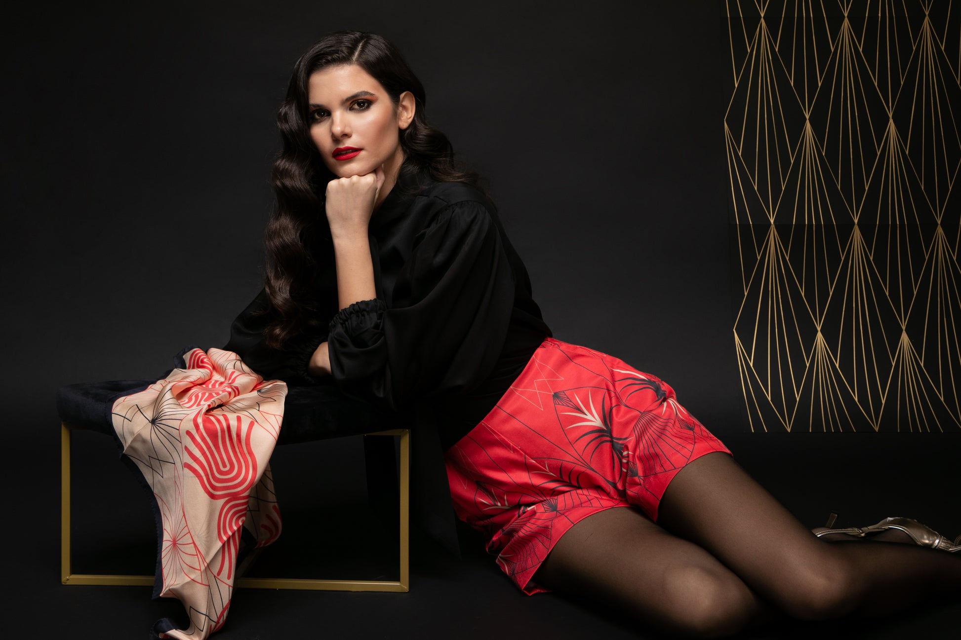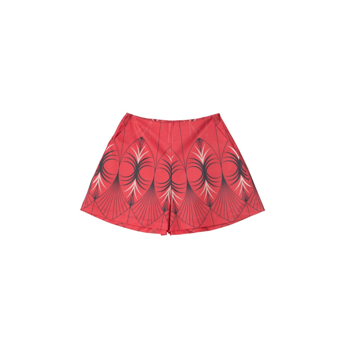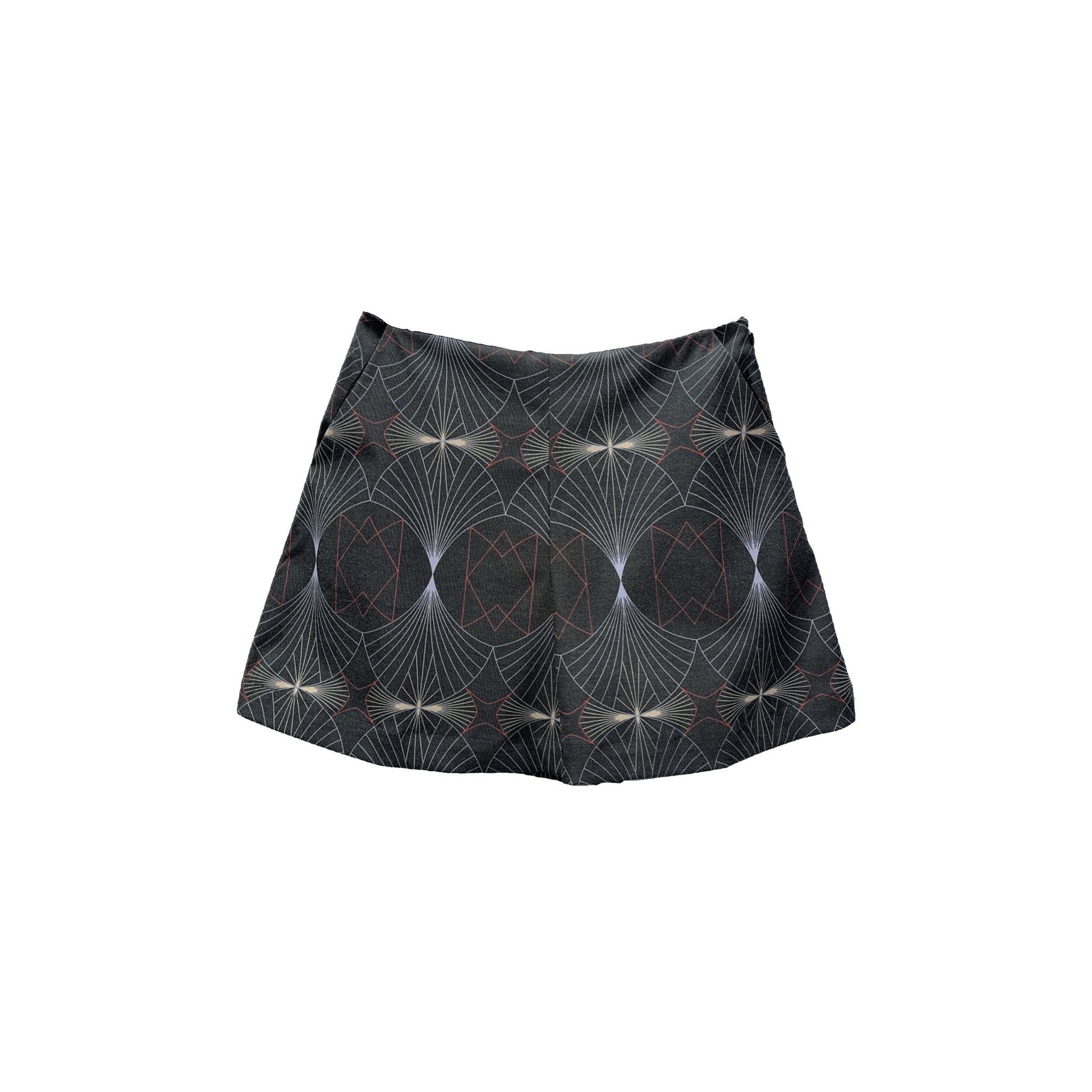 Mini length, designed to be worn at the waist. Pattern exclusively designed for The MAnnequin Collection. Flared leg for a flattering silhouette. Zipper fastening in the back (YKK zipper). Side pockets. Mid-weight material. Made in Greece