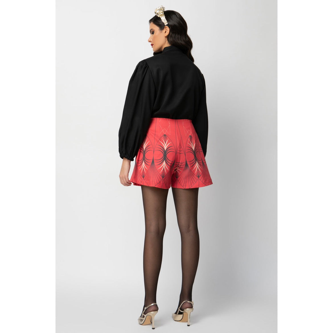 Hazel Shorts will become your butt's best friend this season! Made from a rich cotton blend, they are high-waisted and fitted at the hips, but flare generously at the leg for a mega-flattering silhouette (trust us!) and come in one of our fav prints this season, the Palmagic Red. Style yours with everything, from a plain pussy bow top, like our Katherine Top, to a white T-shirt for an everyday look, like our M+A Cotton T-Shirt.