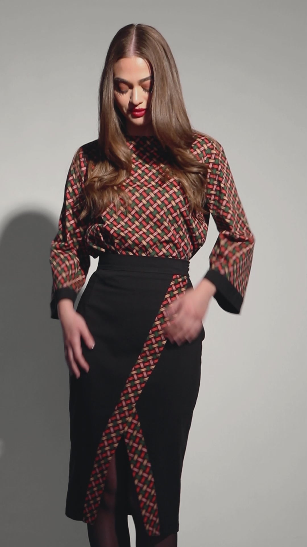 Light, beautiful and unapologetically feminine, the Imogen Top is an evening top for your admirers to fall in love with. Cut from a cotton blend, printed in our Lucky Weave pattern with dramatic long sleeves, it almost features a vintage-inspired shape. Match her either with our Cara Bermuda Shorts or with the Siobhan Skirt for a total feminine look.