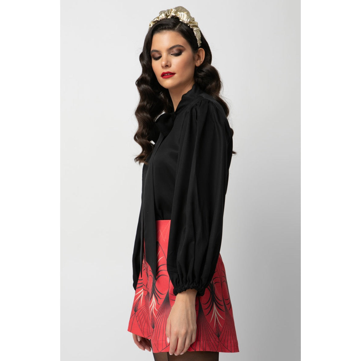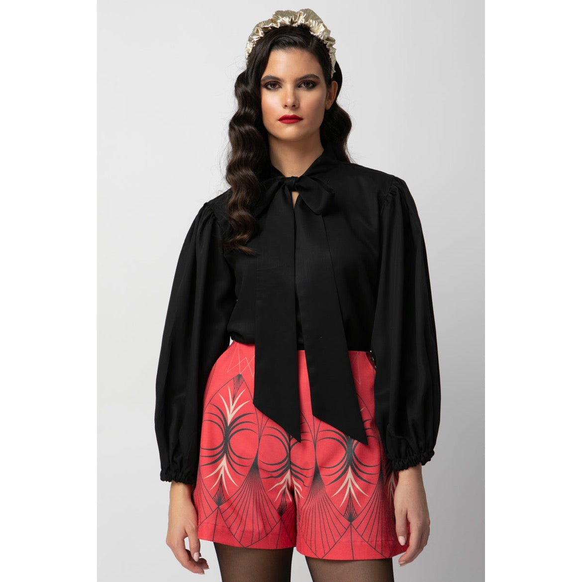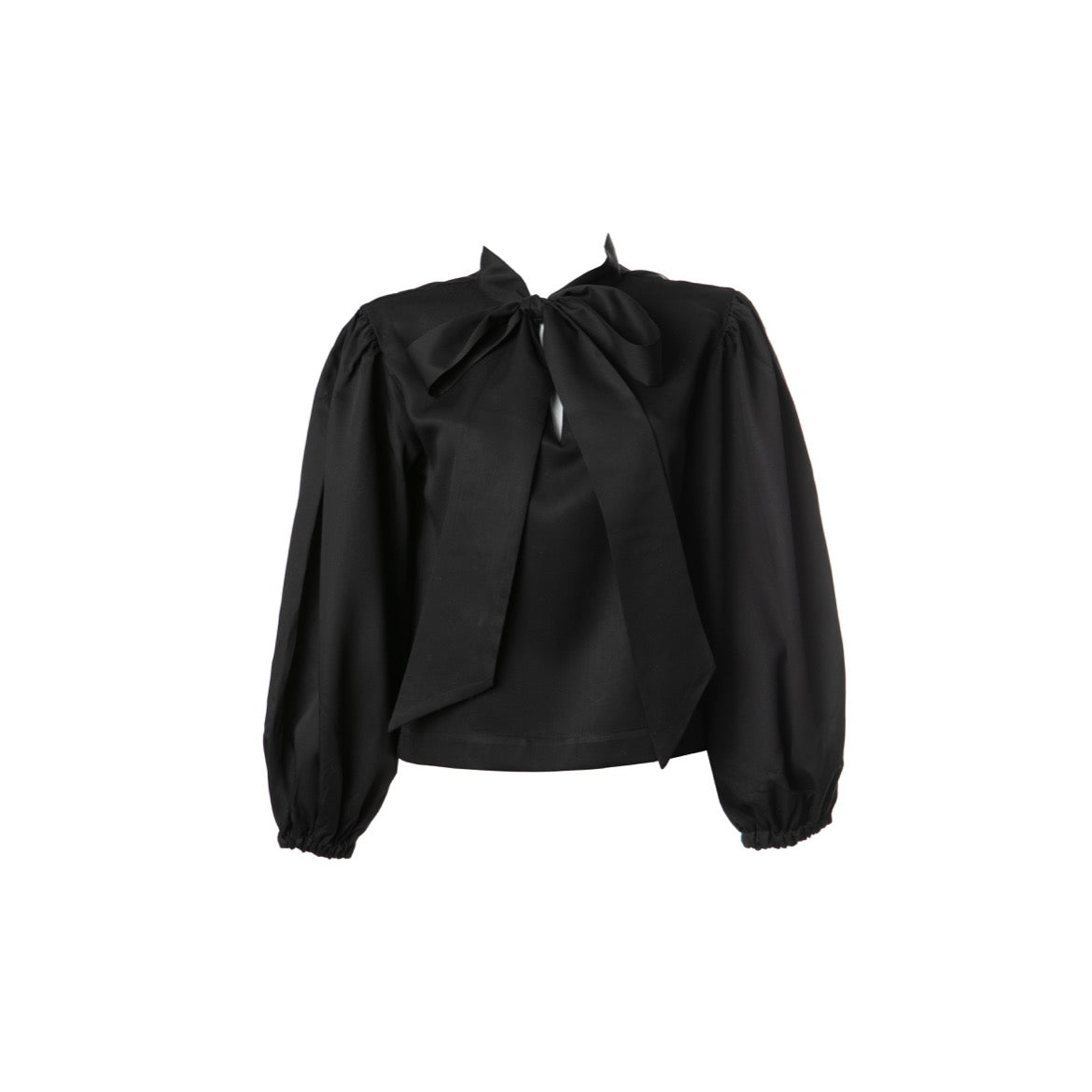 Fits true to size, take your normal size. Designed for a loose fit. Pussy bow neck-tie. Elasticated cuffs. V-neckline. Long balloon sleeves. Premium twill, made with 100% certified Lenzing Tencel yarn. Made in Greece.