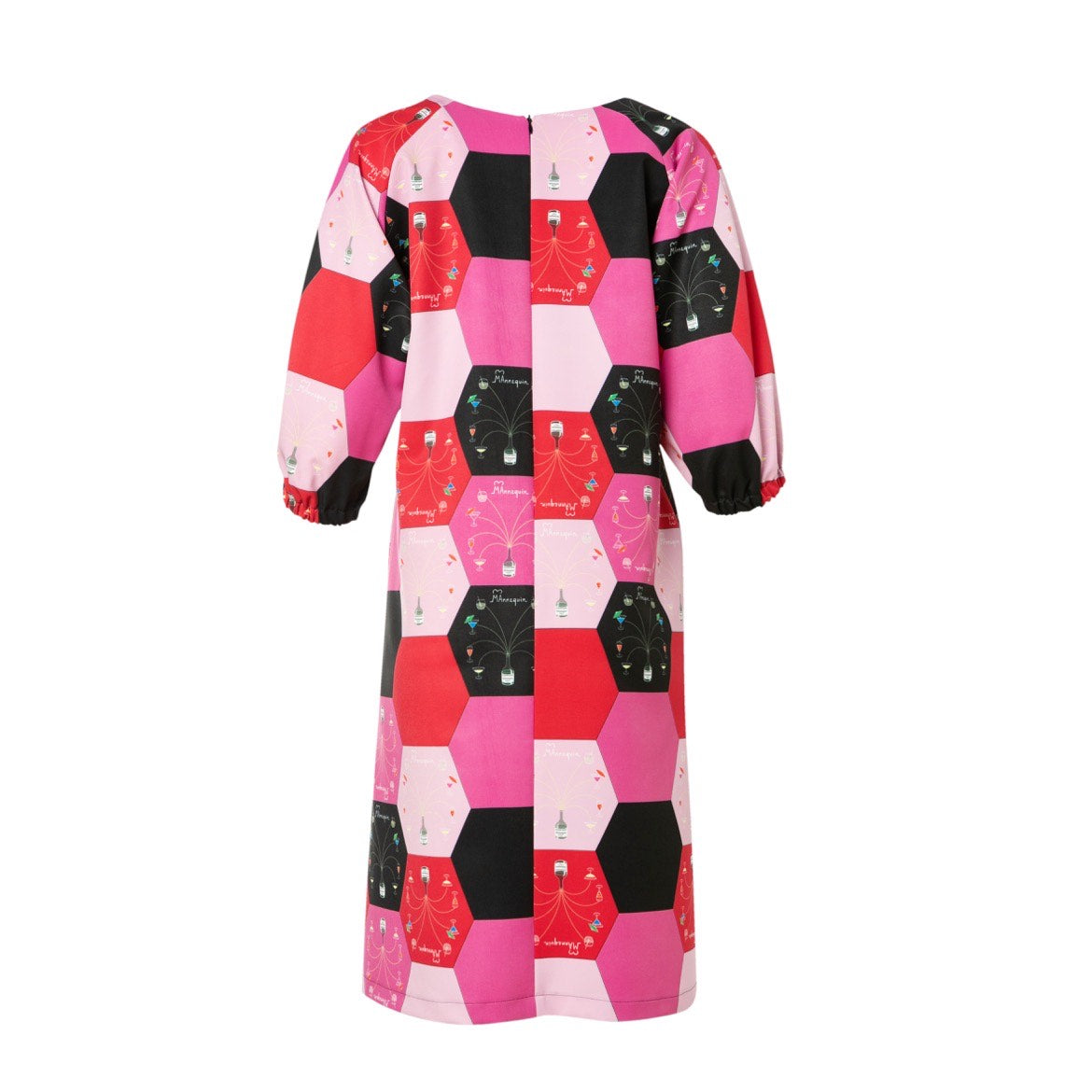 Seduce the world in our Maya dress that combines a flash of skin with a magical fit. Crafted in our MAnnequini Pink signature print, a V-neck upper part with 3/4 raglan sleeves, Maya falls into a roomy A-line skirt with a slit in the back. Upgrade your style from a 9 to 5 look with a pair of high boots and our fabulous MAnnequini Pink silk scarf.