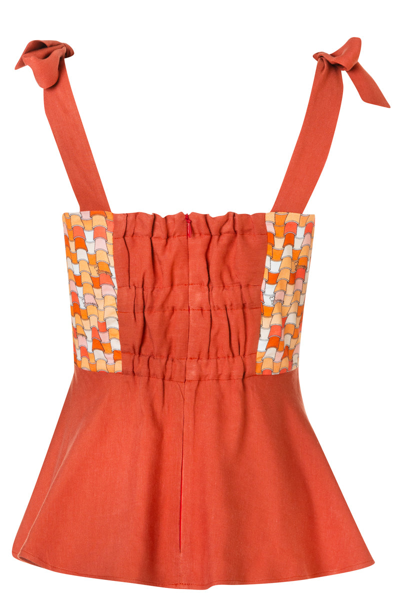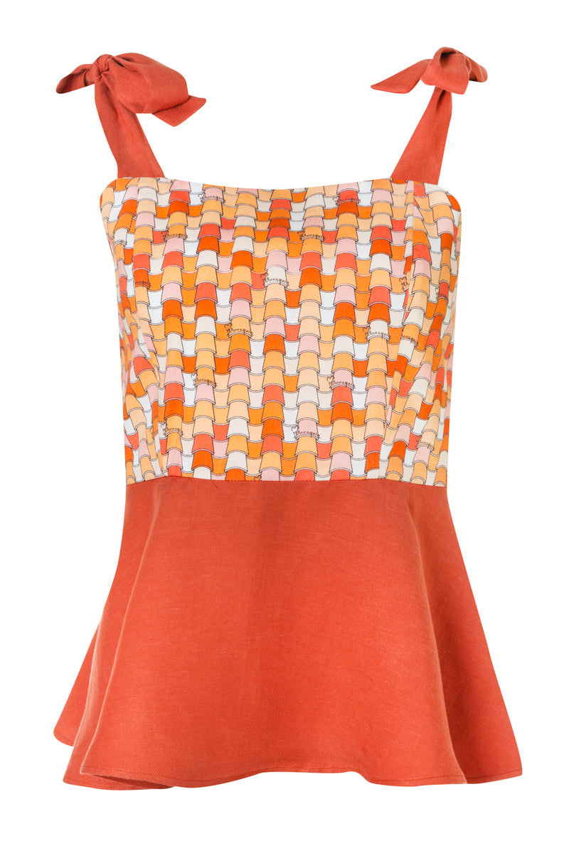 This top was meant for a moment in the spotlight. Crafted from linen, viscose and cotton, embellished with our Terracotta Tiles pattern, the Sprout Top arrives with straps perfect for showing those summer shoulders and a structured, statement making peplum hem. We love it with a feminine pant for an unexpected and super-chic look.