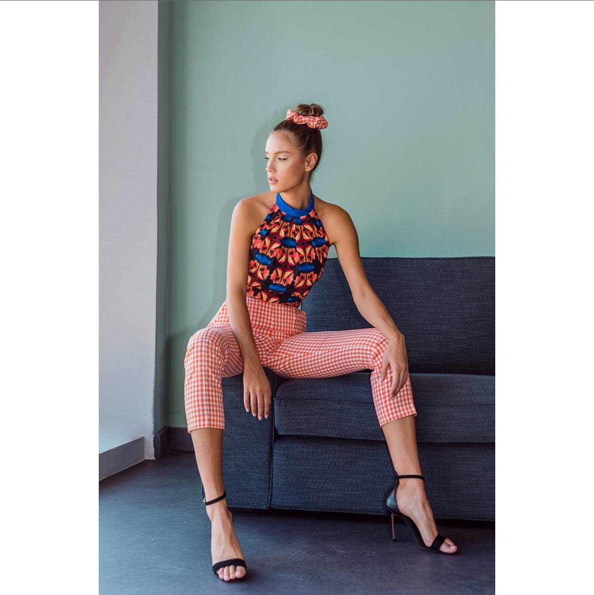 These Vichy Trousers throw back to past decades in the coolest way. Made from a cotton blend in a playful white and orange or blue gingham that's evocative from styles of the 50's, these trousers are cut to a skinny fit, sit high on waist and feature a concealed zipper closure in the side. A crease through the front of the leg gives them a final, sharp finish!